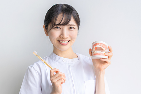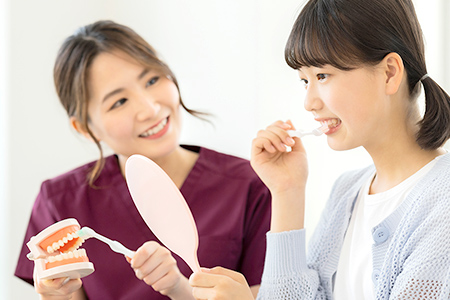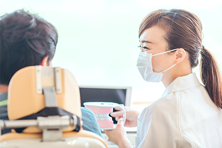歯科衛生士の仕事として、口腔ケアがあります。フッ化物などの薬を塗ったり、患者さんに口腔ケアについて指導したりと、患者さんの健康に直接関われるのがやりがいにつながっています。